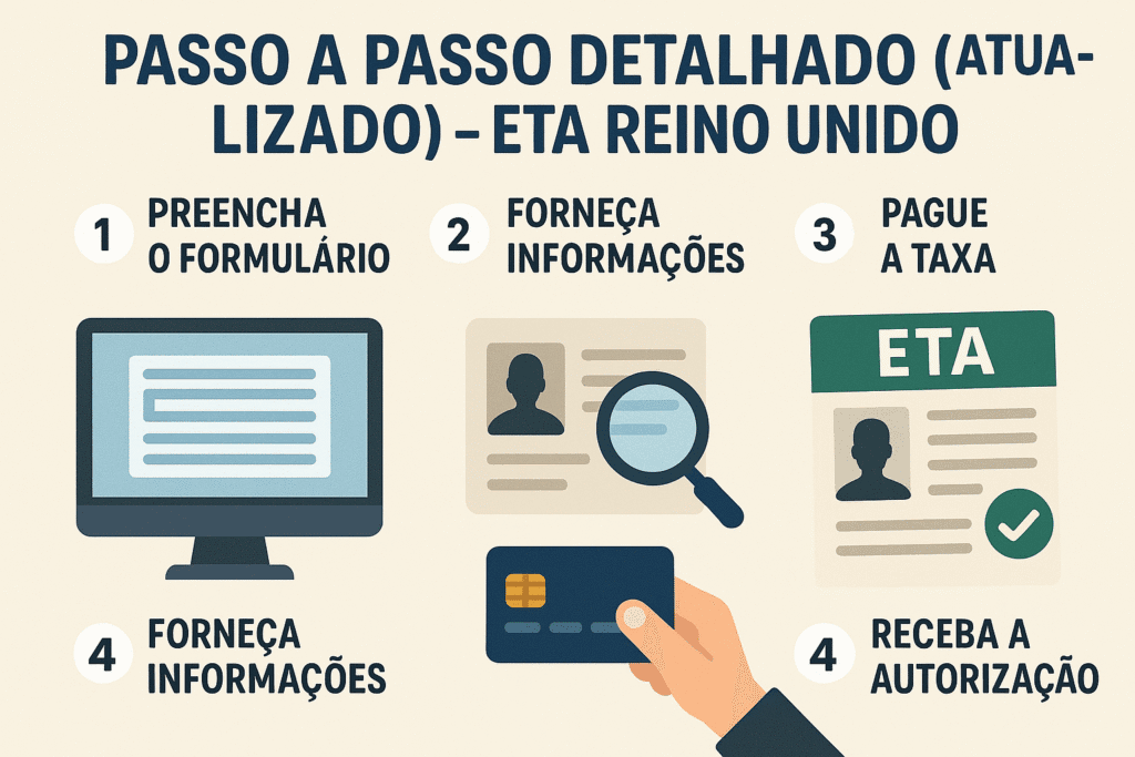 A Electronic Travel Authorization (ETA) é um sistema de autorização digital que funciona como um filtro prévio de entrada no país. Ela está vinculada eletronicamente ao passaporte do viajante e tem como objetivo facilitar o controle de imigração no Reino Unido.